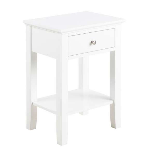 Szafka LINNEA od duńskiej marki ACTONA. Praktyczną szafkę nocną z szufladą na drobiazgi wykonano z płyty MDF w kolorze białym. Doskonale sprawdzi się w sypialni, pokoju dziennym lub przedpokoju. Wymiary: wys. 63 cm / szer. 45 cm / gł. 34 cm Waga netto: 11 kg Wymiary opakowania: 67 cm / 38 cm / 15 cm.