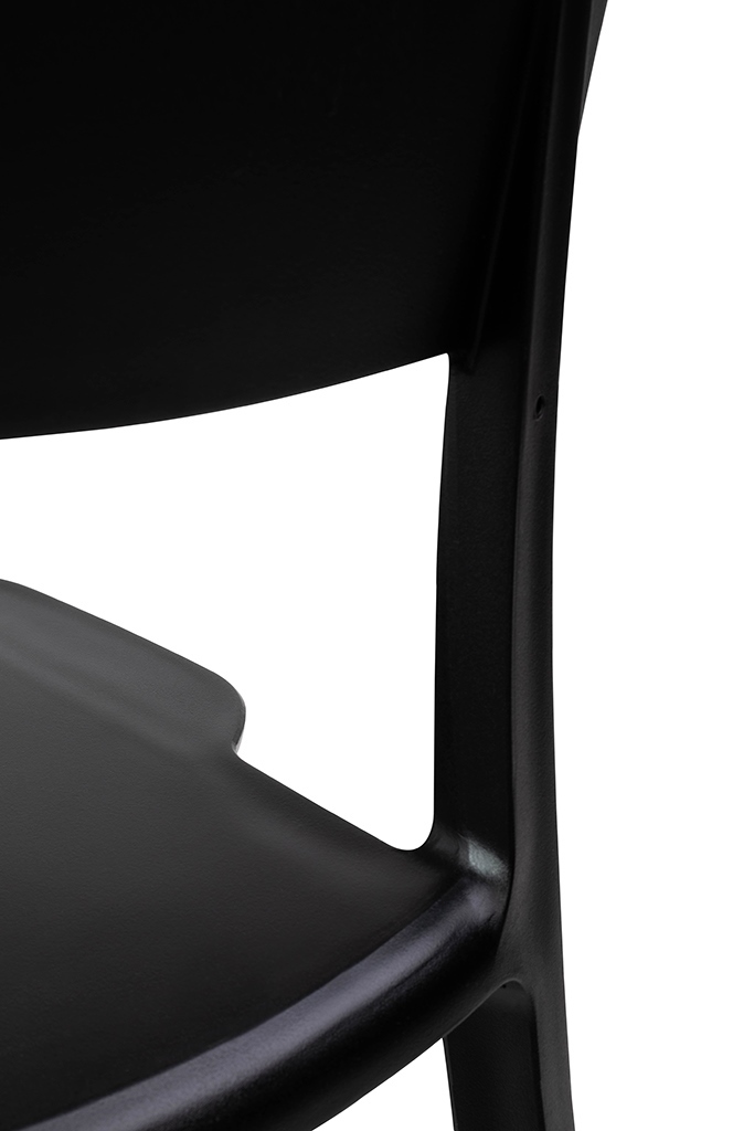 Krzesło AGAT PREMIUM. Krzesło w całości wykonane jest polipropylenu w kolorze czarnym. Wymiary: wys. 80 cm / szer. 53 cm / gł. 49 cm Wysokość do krawędzi siedziska: 45 cm Waga netto: 4 kg Wymiary opakowania: “L” 1) 70 cm / 50 cm / 58 cm 2) 50 cm / 29 cm / 35 cm.