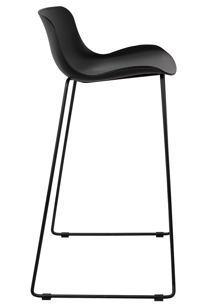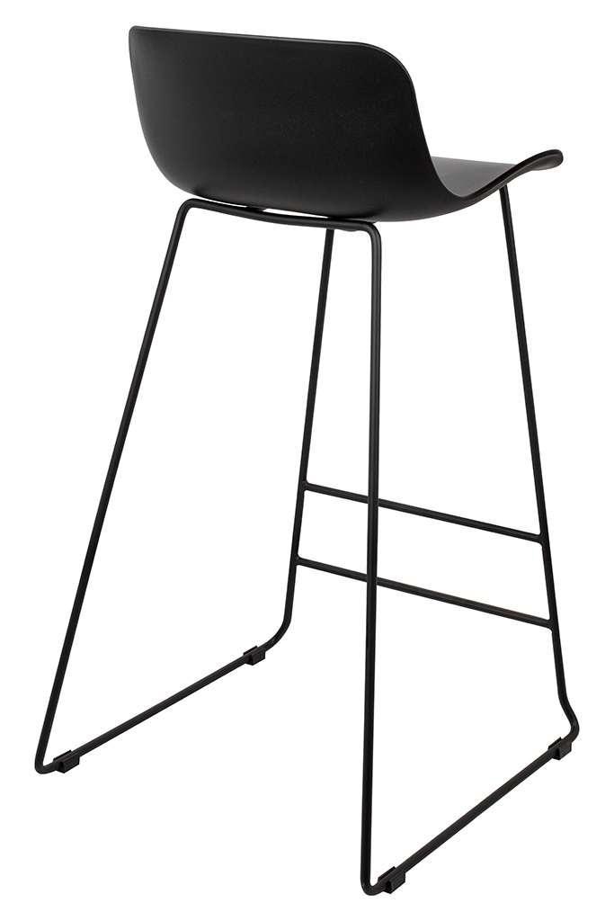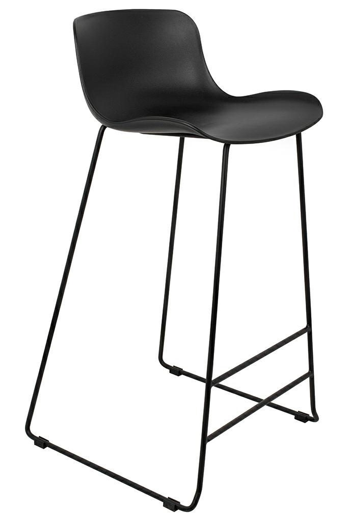 Krzesło barowe COMA czarne. W swej prostocie wykonania jest niezwykle elegancki. Siedzisko wykonano z polipropylenu w kolorze czarnym. Podstawę ze stali malowanej proszkowo na czarno zabezpieczono stopkami. Komfortu dodaje praktyczny podnóżek umiejscowiony na odpowiedniej wysokości. Wymiary: wys. 95 cm / szer. 50 cm / gł. 52,5 cm Wysokość do krawędzi siedziska: 74,5 cm Siedzisko: szer. 43,5 cm / gł. 36 cm Oparcie: wys. 22 cm / szer. 39 cm Rozstaw nóg: szer. 50 cm / gł. 50 cm / wys. 76 cm Podnóżek: szer. 37 cm Wysokość do niższego podnóżka: 16 cm Wysokość do wyższego podnóżka: 28,5 cm Wymiary opakowania: 56 cm / 53 cm / 89 cm.