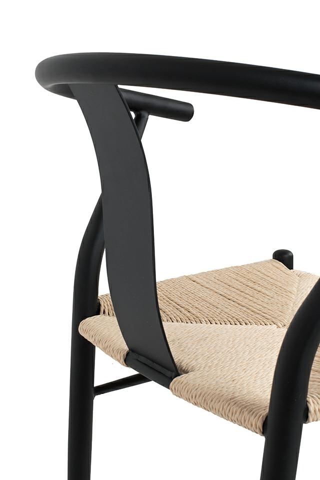 Krzesło WISHBONE METAL naturalne. Wytrzymała i stabilna konstrukcja została wykonana z metalu w czarnym, satynowym kolorze. Siedzisko plecione z naturalnych jasnych włókien sprawia, że Wishbone łączy w sobie surowe wykonanie z szykiem i elegancją. Wymiary: wys. 75 cm / szer. 55 cm / gł. 50 cm Wysokość do krawędzi siedziska: 43 cm Wysokość do podłokietników: 70 cm Siedzisko: szer. 48 cm / gł. 41 cm Oparcie: wys. 35 cm / szer. 50 cm Rozstaw nóg: szer. przód 45 cm / szer. tył 41 cm / gł. 41 cm Waga netto: 7,2 kg Wymiary opakowania: 92 cm / 56,5 cm / 51,5 cm.