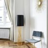 Lampa podłogowa HOLMES złota z czarnym kloszem – metal