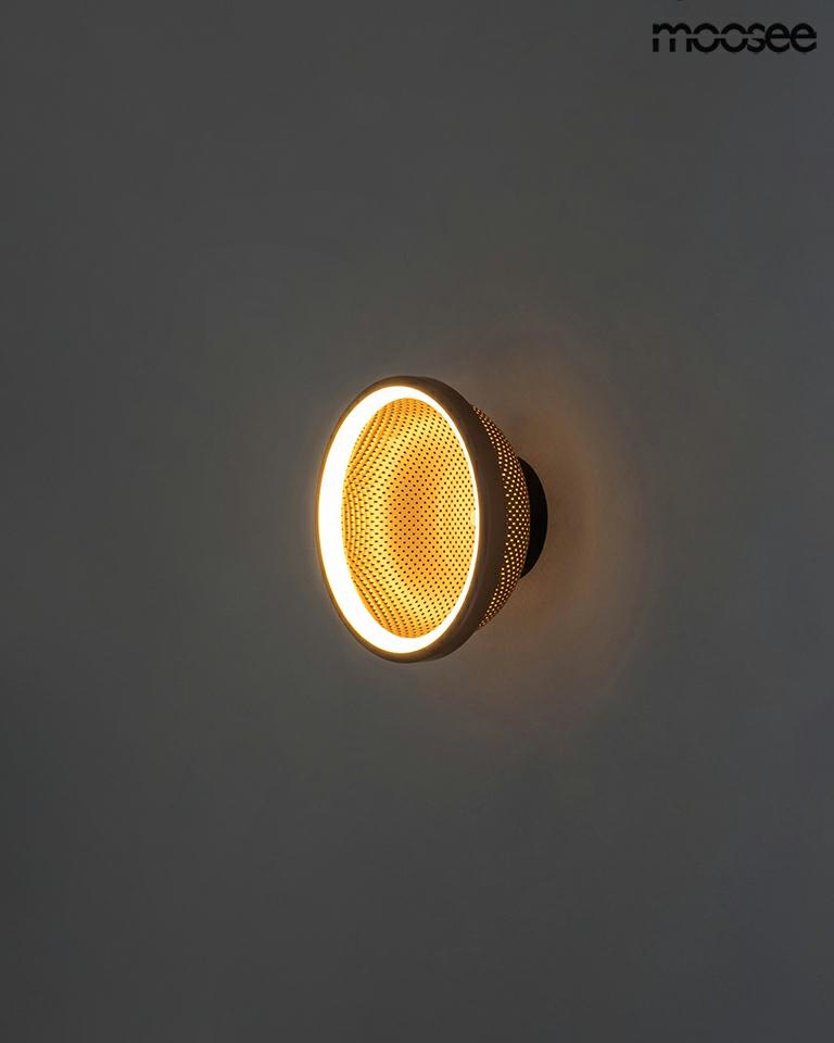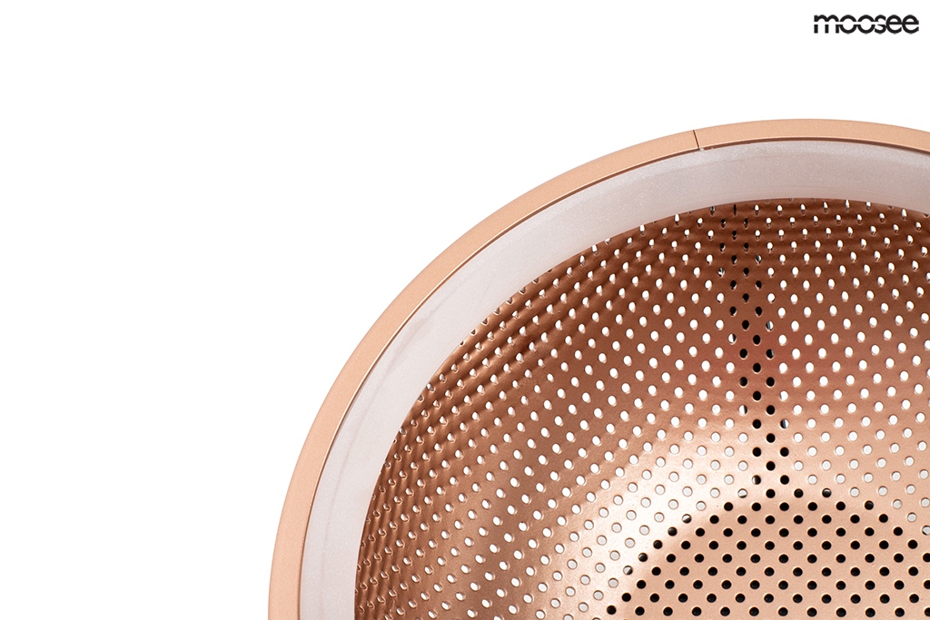 MOOSEE lampa ścienna FARO miedziana. Oprawa wykonana jest z połączenia akrylu i aluminium w miedzianym kolorze. Ciepłe światło rozświetla matowy klosz, a ażurowe wykończenie tworzy niesamowity efekt świetlny. Faro odnajdzie się w aranżacjach nowoczesnych, jak i loftowych. Światło: LED 16 W / 1280 lm / 3000 K Oprawa: śr. 26 cm / gł. 15 cm Klosz: śr. 26 cm / gł. 15 cm Mocowanie: wys. 3 cm / śr 12 cm Montaż: instalacja ścienna Waga netto: 1,4 kg Wymiary opakowania: 31 cm / 31 cm / 22 cm.