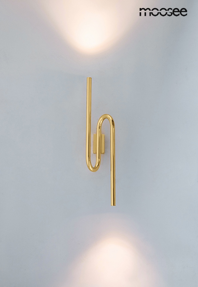 MOOSEE lampa ścienna MACAROON złota. Nowoczesna oprawa ścienna o designerskim kształcie, rozpraszającym światło w górę, jak i w dół. Całość wykonano ze stali w eleganckim złotym kolorze. Macaroon idealnie odnajdzie się we współczesnych wnętrzach, dodatkowo tworząc przy tym ozdobę na ścianie. Światło: LED 5,5W / 440 lm / 3000 K Oprawa: wys. 66 cm / szer. 16 cm / gł. 17 cm Mocowanie: wys. 10 cm / szer. 6,5 cm / gl. 4 cm Montaż: instalacja ścienna Waga netto: 1,8 kg Wymiary opakowania: 66 cm / 25 cm / 25 cm.