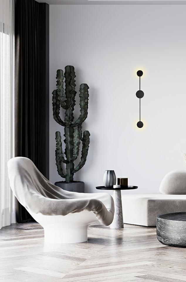 MOOSEE lampa ścienna SHADOW 2 CLOSE czarna. Nowoczesny kinkiet wykonany z metalu w czarnym, matowym kolorze. Shadow można zawiesić również na suficie w formie plafonu. Okrągłe klosze skrywają źródło światła, dzięki czemu strumień świetlny odbija się od ściany. Oprawa tworzy efekt padającego cienia, co jednocześnie w przyjemny sposób oświetla pomieszczenie. Światło: LED 9 W / 720 lm / 3000 K Oprawa: wys. 70,5 cm / szer. 10 cm / gł. 3,5 cm Klosz: śr. 8 cm / gł. 2,5 cm Mocowanie: śr. 8 cm / gł. 3,5 cm Mocowanie koło: śr. 10 cm Montaż: instalacja ścienna Waga netto: 0,3 kg Wymiary opakowania: 85 cm / 15 cm / 10 cm.