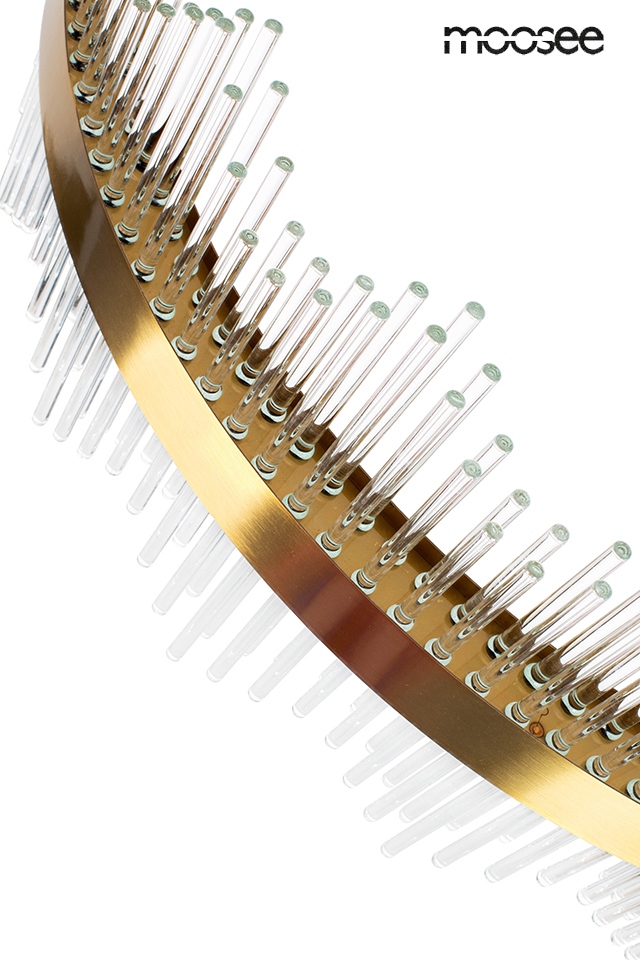 MOOSEE lampa wisząca FLORENS 60 złota. Ekskluzywna i elegancka oprawa, która z powodzeniem ozdobi wnętrza klasyczne i nowoczesne. Szklane, transparentne klosze zamontowano w dwurzędzie na metalowej obręczy, co wyraźnie oddaje efekt kryształu. Światło skierowane w górę i w dół zapewnia optymalne oświetlenie i niesamowity efekt wizualny. Światło: LED 37 W / 2960 lm / 3000 K Oprawa: wys. 150 cm / szer. 60 cm / gł. 60 cm Klosz: wys. 26 cm / szer. 60 cm / gł. 60 cm Złoty element klosza: wys. 4 cm Przewód: 130 cm Mocowanie: wys. 4 cm / śr. 12 cm Montaż: instalacja sufitowa Waga netto: 9 kg Wymiary opakowania: 65 cm / 65 cm / 17 cm.