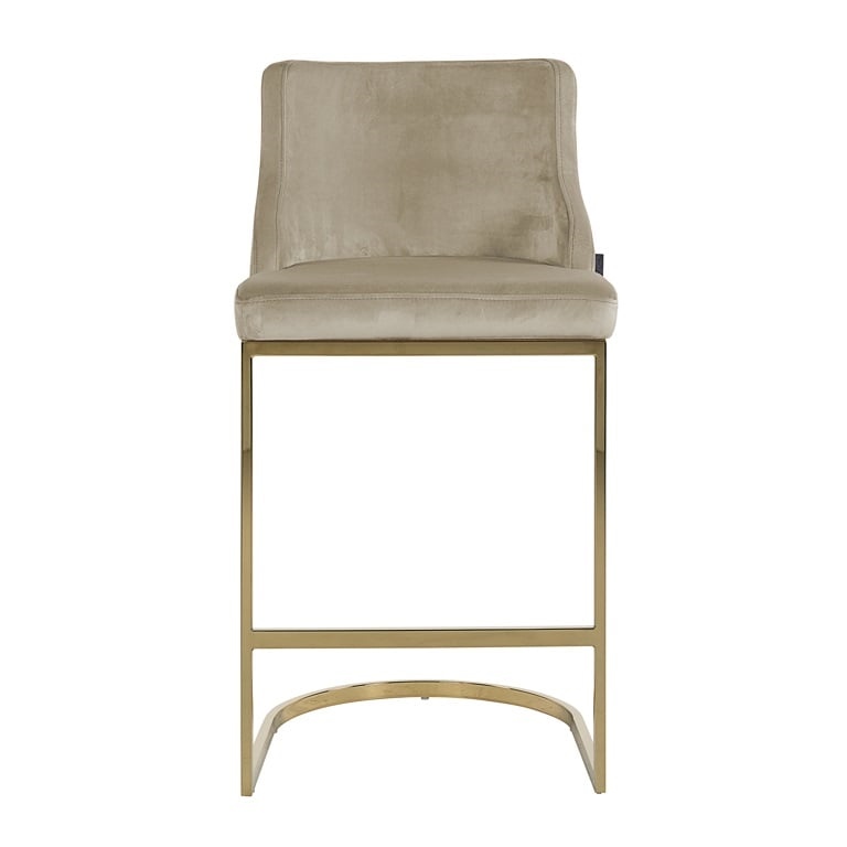 RICHMOND krzesło barowe BOLTON 75 khaki – welur, złota podstawa