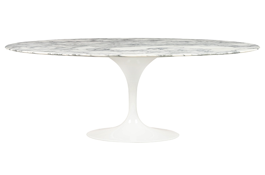 Stół TULIP ELLIPSE MARBLE ARABESCATO – biały – blat owalny marmurowy, metal